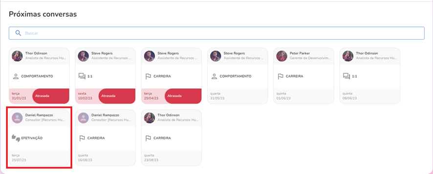 As Conversas de Efetivação são conversas pontuais geradas a partir da Conversa de Onboarding para todo colaborador recém admitido e inserido em um círculo.